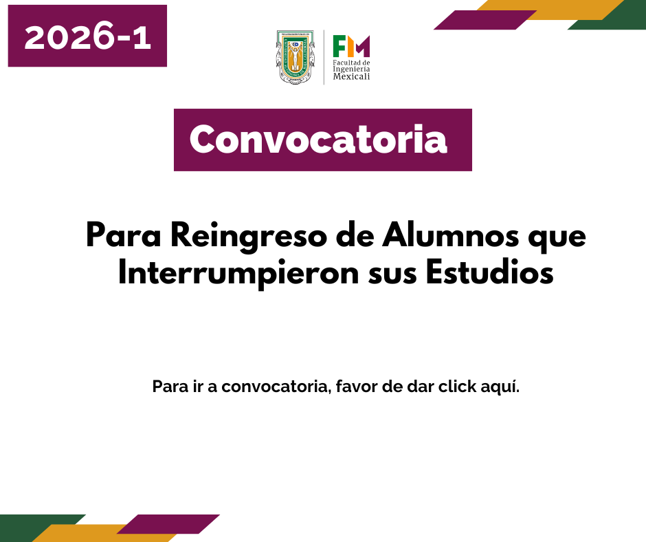 Está abierta la convocatoria para alumnos que interrumpieron sus estudios y deseen obtener su reingreso al mismo programa educativo, en caso de que aplique. Para mayores informes favor de consultar la convocatoria.